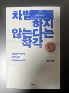 책의 표지에 적힌 파란색 제목 ‘차별하지 않는다는 착각’은 마치 독자에게 던지는 질문 같습니다. 저자는 우리가 차별을 ‘악의적인 누군가’가 저지르는 범죄라고 생각하는 순간, 일상 속에 만연한 구조적인 차별을 놓치게 된다고 경고합니다.