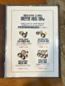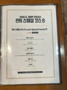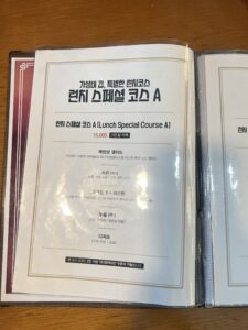 메뉴판을 펼치니 혼자서도 부담 없이 즐길 수 있는 1인 세트부터, 여럿이 함께 나누기 좋은 코스 요리까지 다채로운 선택지가 준비되어 있었습니다.