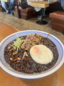 가장 기대했던 ‘차돌 듬뿍 짜장면’은 이름 그대로 고소한 차돌박이가 면 위에 넉넉하게 올라가 있었습니다. 그 옆으로는 채 썬 오이와 반숙 달걀 프라이가 얌전히 자리를 지키고 있었는데, 노른자를 톡 터뜨려 춘장 소스와 함께 비비니 윤기가 자르르 흐르는 것이 보는 것만으로도 군침이 돌았습니다. 한 젓가락 크게 집어 맛을 보니, 짭조름한 춘장의 맛과 차돌박이의 기름진 고소함이 입안 가득 어우러졌습니다. 고기의 식감이 더해져 씹는 재미가 있었고, 달걀의 부드러움이 자칫 강할 수 있는 간을 적당히 중화시켜주었습니다.