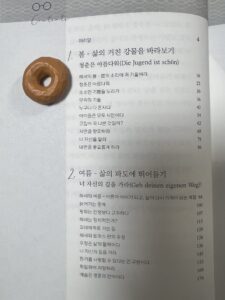 이 책은 인생을 사계절에 빗대어 이야기한다. 봄, 여름, 가을, 겨울로 이어지는 목차는 단순한 시간의 흐름이 아니다. 그것은 인간이 성숙해가는 영혼의 지도와 같다.